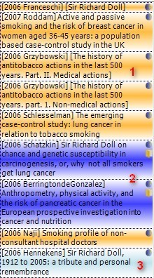 For google scholar search you can use year range and total references in text e.g 'doll smoking 1990-2000 n=50'