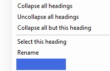 Headings Headings can be collapsed or uncollapsed and have right-click menu
