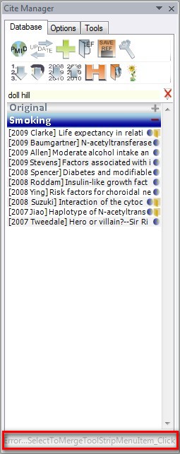 Messages The bottom of Cite Manager tab displays messages. New message is highlighted for few seconds then are grayed out. Error messages are archived in the log. (old image) Citation Manager – Options Tab