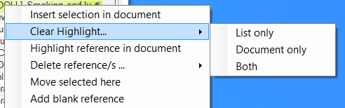 Clear Highlight clears all highlightining in the list. There are further options in sub-menu