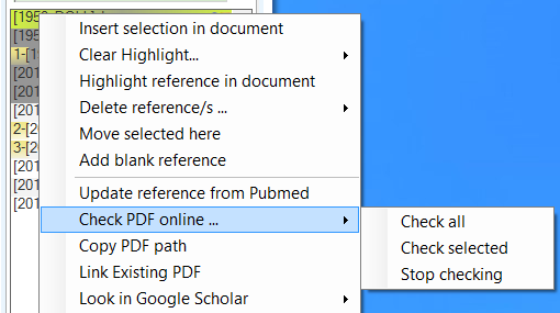 (default i.e. clicking on Check PDF online rather than submenu = selected references)