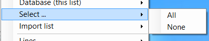 The database list references can be selected by using Ctrl-click for dis-contiguous selection and Shift-click for contiguous selection. Unlike usual windows based selection, the selection is not lost with just clicking..Use <Clear Highlight…> option on right click menu to clear selection