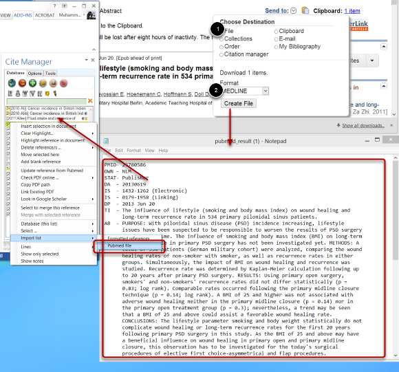 Downloads the reference (in list and document) from Pubmed. . This is only possible if the reference has Pubmed ID