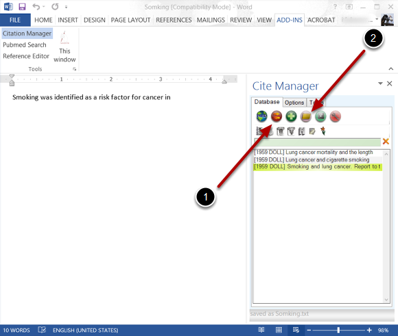 References embedded in the document have complete information to regenerate the database. However, this database will only have the references embedded in the document (1). Database saved as text file may have references not embedded in the document. (2)