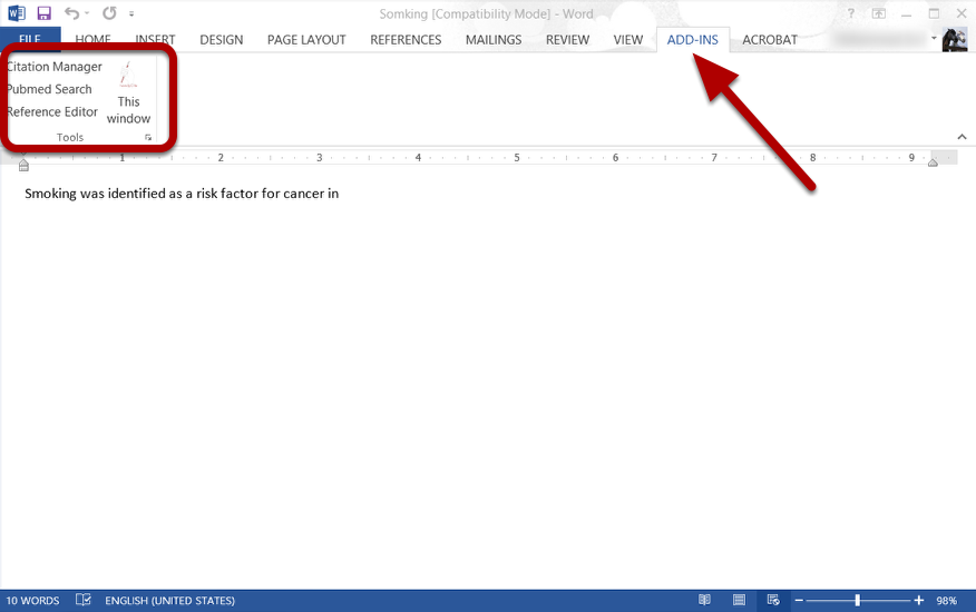 HandyCite runs embedded in word. There is no separate window. It will run as taskpanes within word. When installed, it will add buttons in the Add-Ins section in the word ribbon.