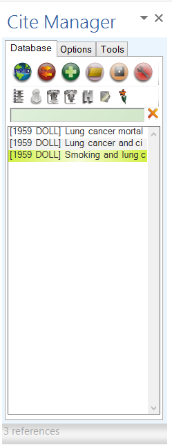 Pubmed provides link to pubmed and help in finding references from pubmed. References found on this taskpane can be easily added to the database (CiteManager)